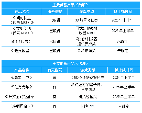 公司储备多款新品,,期待为玩家解锁更多新鲜体验,,,部分产品如下表所示::